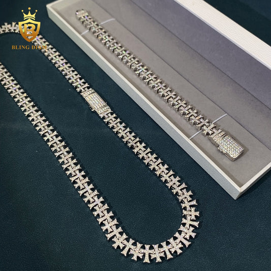 Cross 10mm Moissanite Cuban Chain