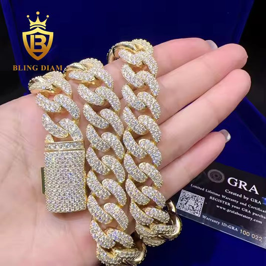 Iced Out Mosaic Setting Moissanite Cuban Chains