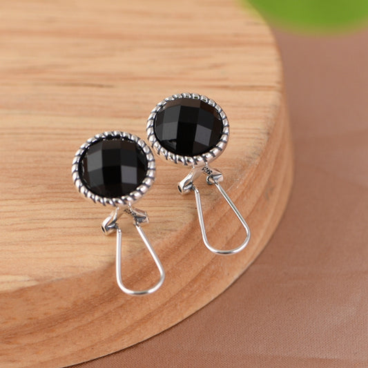 Black Agate Round Earrings