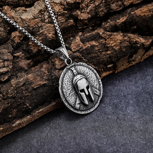 Spartan Helmet Pendant | Antique Stainless Steel Necklace