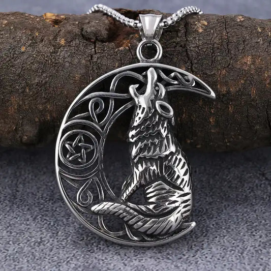 Howling Moon Wolf Pendant