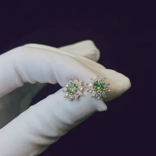 Royal Flora VVS Moissanite Stud Earrings | Blue-Green Stones in Sterling Silver