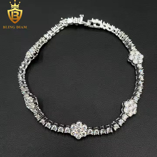Luxury Moissanite Floral Tennis Bracelet | 3mm VVS Stones | 925 Sterling Silver