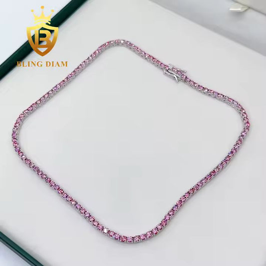Pink Tennis Chain - 3mm Moissanite, Sterling Silver