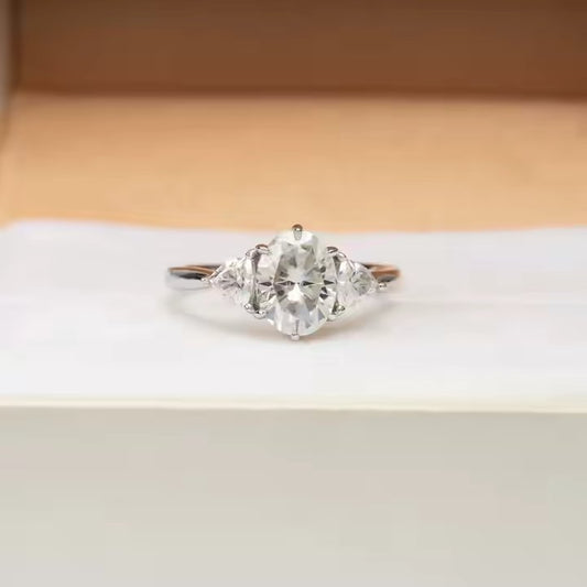 Three-Stone VVS Moissanite Engagement Ring - 925 Silver