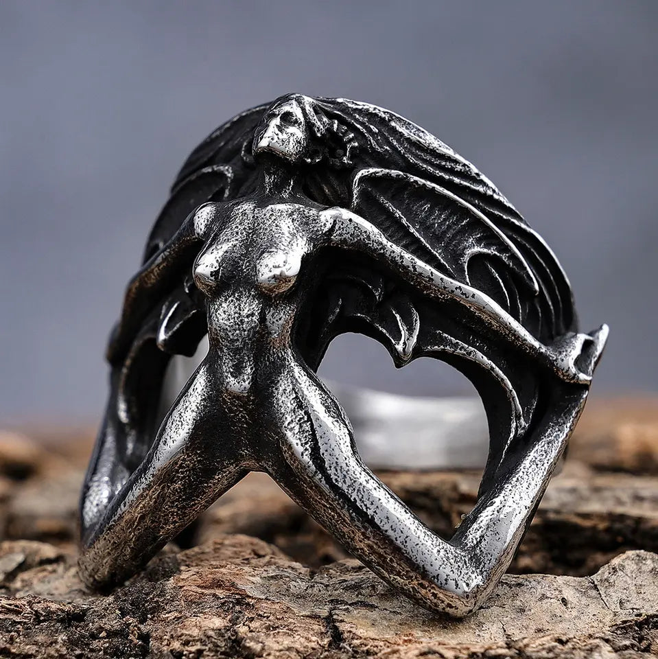 Channel your spirit of freedom with the Winged Steel Ring. This piece captures the feeling of strength and unrestrained style, crafted to resonate with the wearer's inner spirit. Made from high-quality stainless steel, the ring features a detailed figure motif, symbolizing a sense of classic freedom.