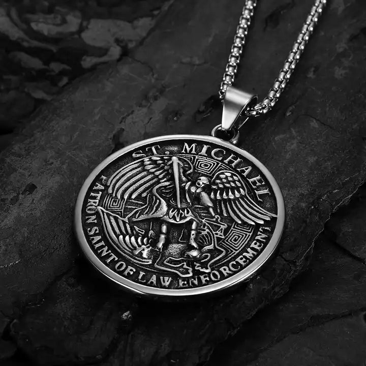 Protection, power, and purpose — all in one timeless medal. This double-sided pendant honors Saint Michael, Patron Saint of Law Enforcement, with a front-side depiction of the Archangel in battle and a prayerful inscription on the back. Made for guardians, peacekeepers, and anyone who walks with strength and faith.