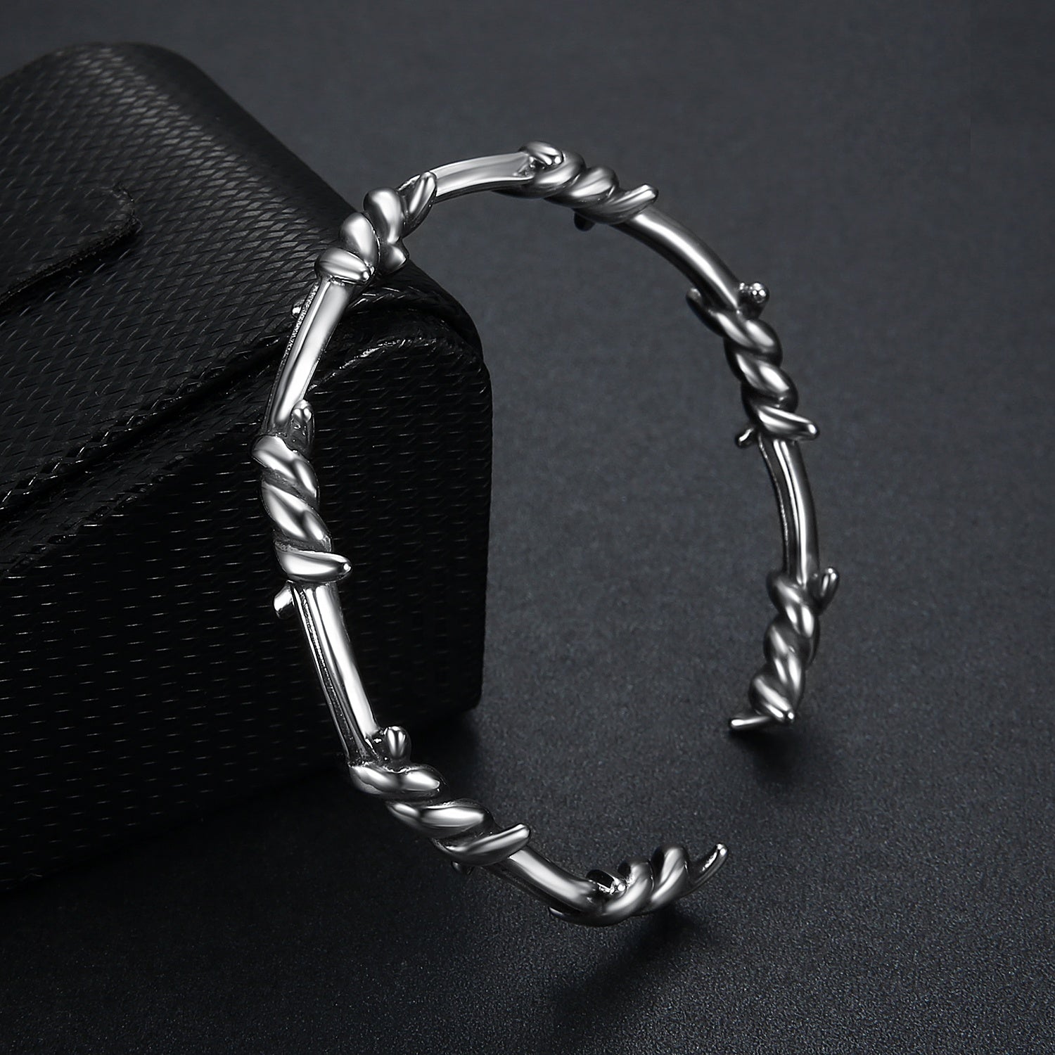 Add a fierce edge to your look with this Punk Barbed Wire Twist Bracelet, designed with double barbed cable wire to create a rugged and powerful aesthetic. Crafted from durable stainless steel, this bangle combines punk attitude with bold modern design. Lightweight yet strong, it’s the perfect accessory for men who love rebellious, statement-making jewelry.