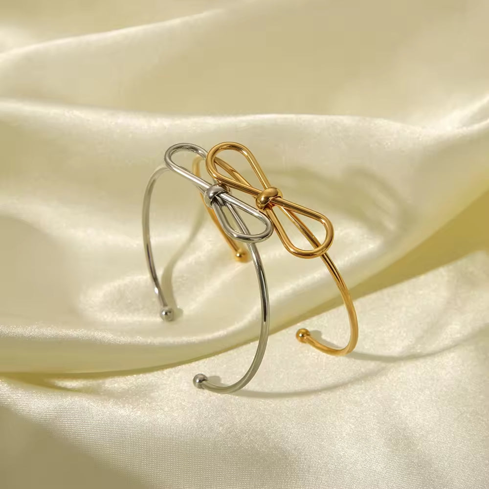 Add a touch of timeless femininity with this Bow Knot Open Cuff Bracelet, crafted from premium stainless steel and plated in luxurious 18K gold. The delicate bow design brings a graceful charm, while the open cuff style ensures a comfortable, adjustable fit. Waterproof, tarnish-resistant, and hypoallergenic, this bracelet is the perfect blend of elegance and durability — ideal for both everyday wear and special occasions.