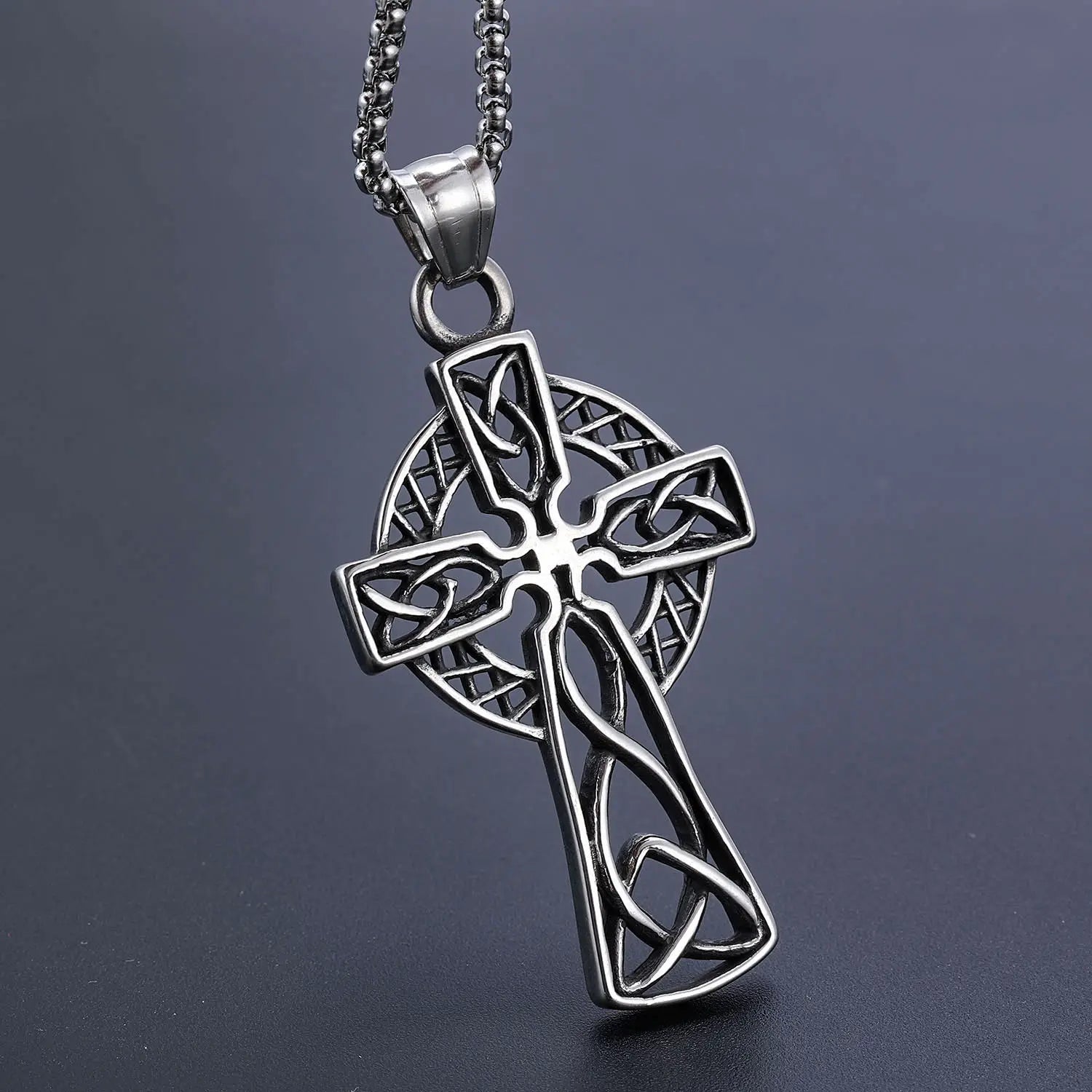 Discover the blend of geometry and heritage with this Triquetra Openwork Pendant. Made from high-quality stainless steel, it features a detailed Celtic knot design within a hollow cross and circle. The piece is polished and oxidized to highlight its depth.