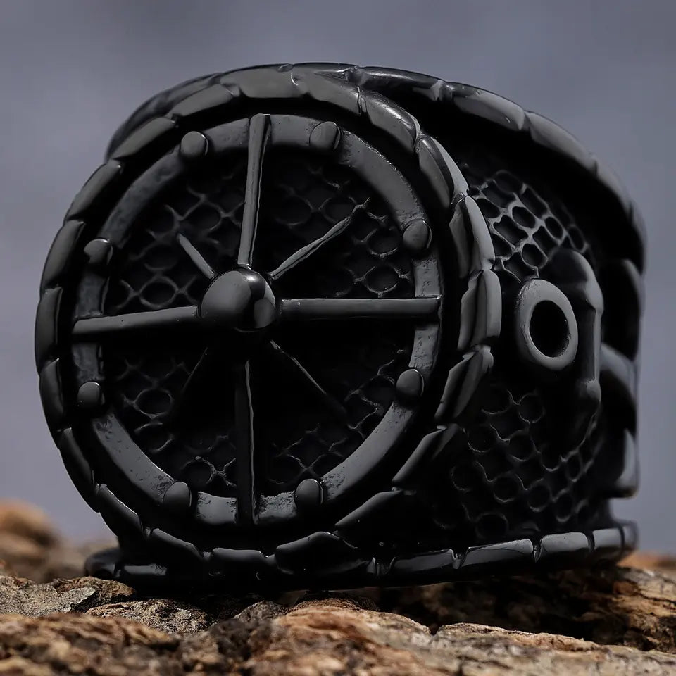 Navigate through your day with this Nautical Anchor Ring, crafted from durable 316L stainless steel and finished with a striking black and silver plating. Its compass and anchor design adds a touch of maritime adventure to your style.