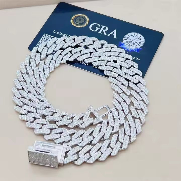 This impressive chain combines the classic style of the Cuban link design with top-notch materials and impeccable diamond simulation, crafted for those who want a standout accessory.