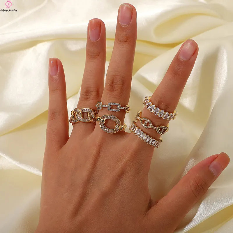 This eye-catching ring showcases a unique chunky chain design, highlighted by the sparkle of cubic zirconia stones. Crafted from high-quality 316L stainless steel, it features an 18K gold plating that adds a touch of style. The adjustable fit ensures comfort for every wearer, making it a versatile addition to any jewelry collection.