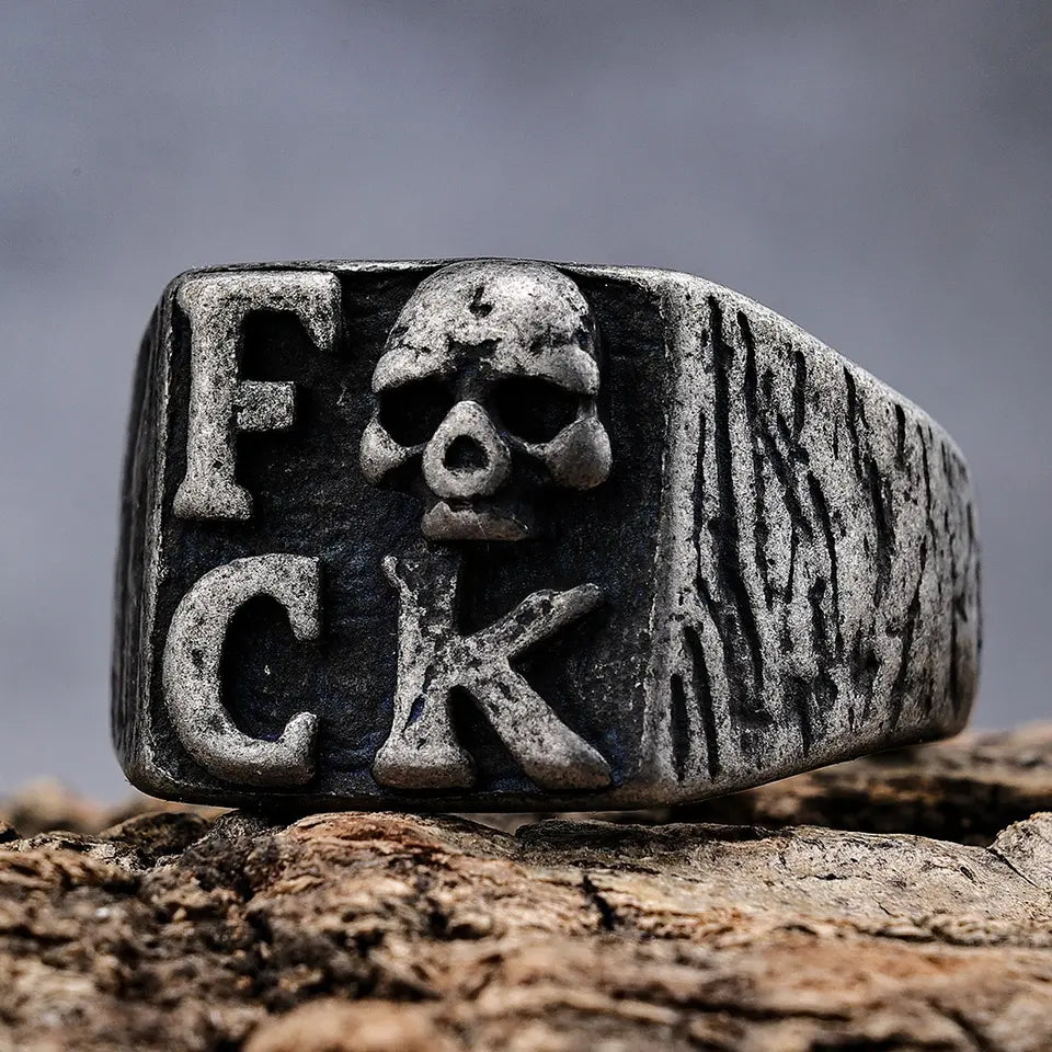Show off your bold individuality with the Profanity Skull Ring, made from durable 316L stainless steel and finished with a silver plating. This unisex accessory is perfect for those who like to make a rebellious style statement, available in a range of sizes from 7 to 13.