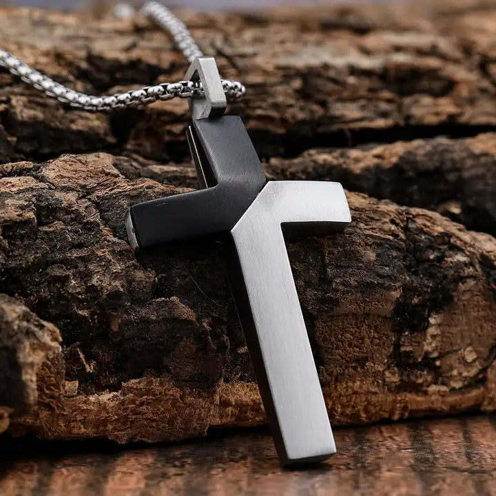 Express your faith with this stylish and modern Christian cross pendant. Crafted for men and boys, this pendant features a unique two-tone design, combining the durability of stainless steel with contrasting silver and black finishes. A subtle yet powerful symbol of faith, this necklace is perfect for everyday wear or as a meaningful gift.
