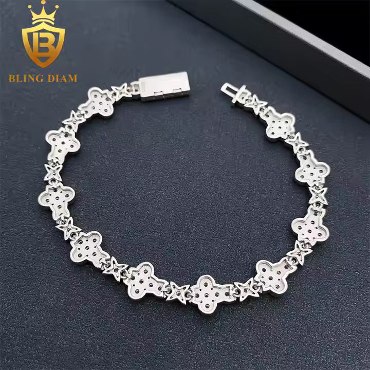The Moissanite Floral Cross Bracelet combines the classic appeal of a Cuban link design with intricate flower and cross motifs, making it a standout accessory. Crafted from high-quality 925 sterling silver, the bracelet features moissanite stones that add a touch of sparkle to its bold 10-13mm width. This piece is both a fashion statement and a symbol of personal expression.