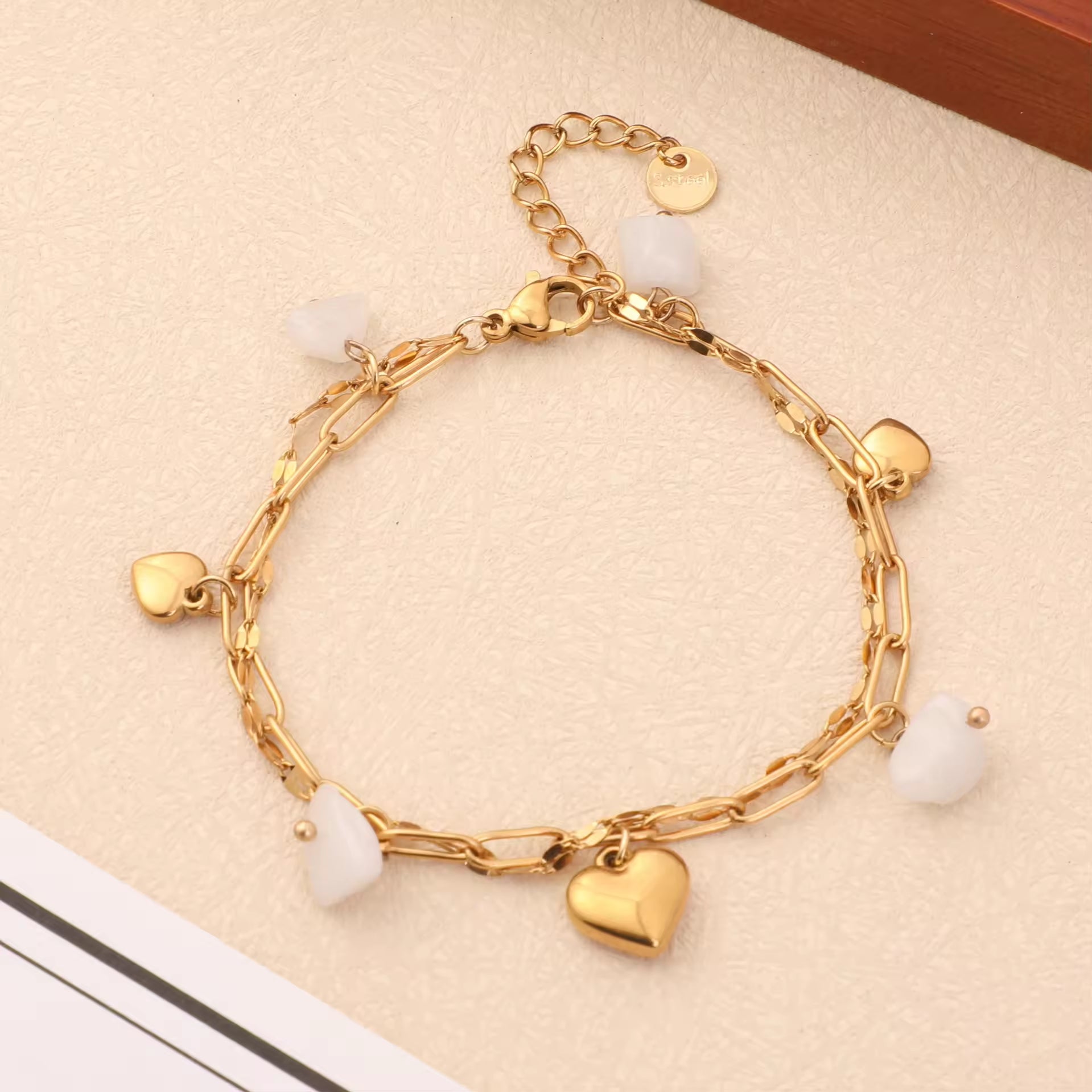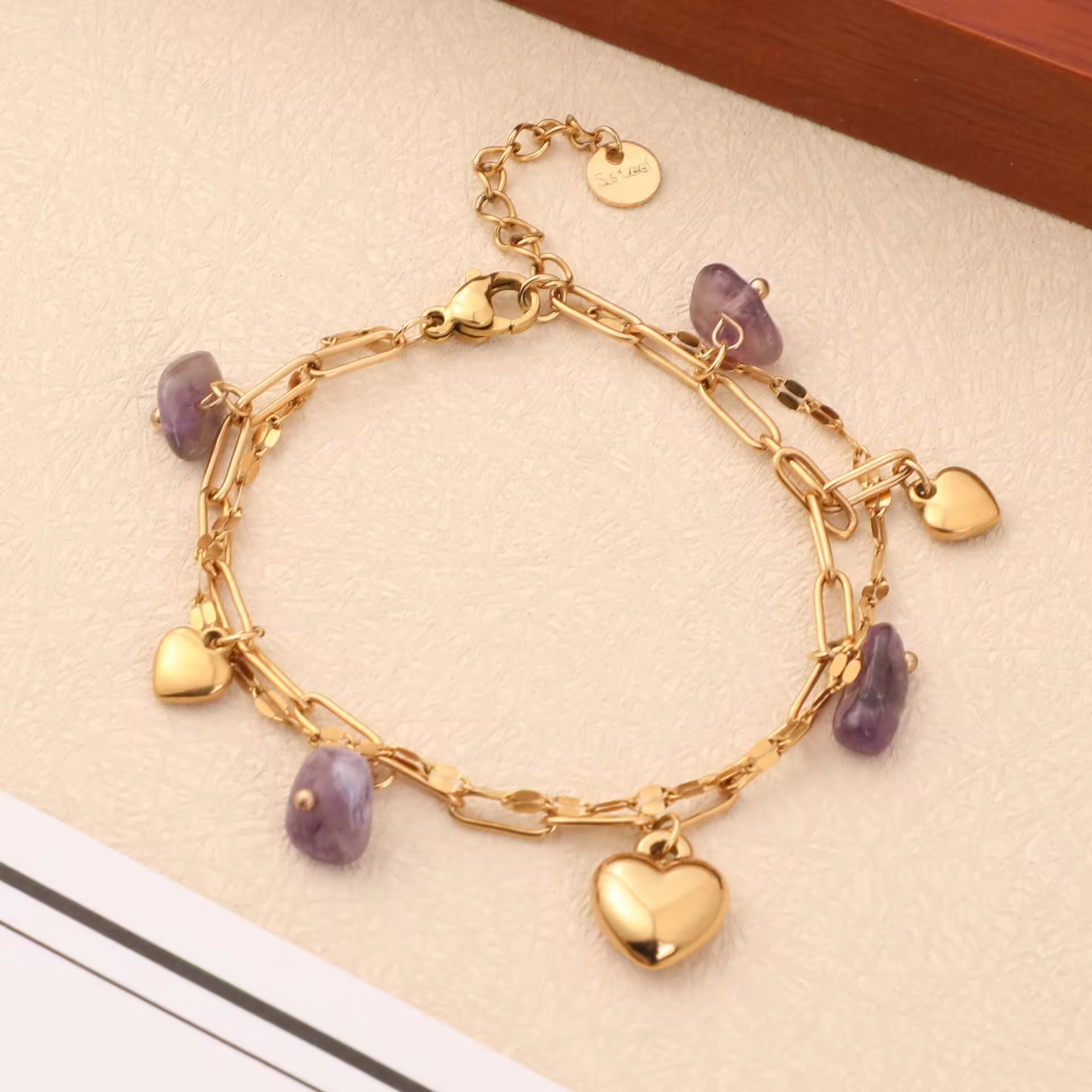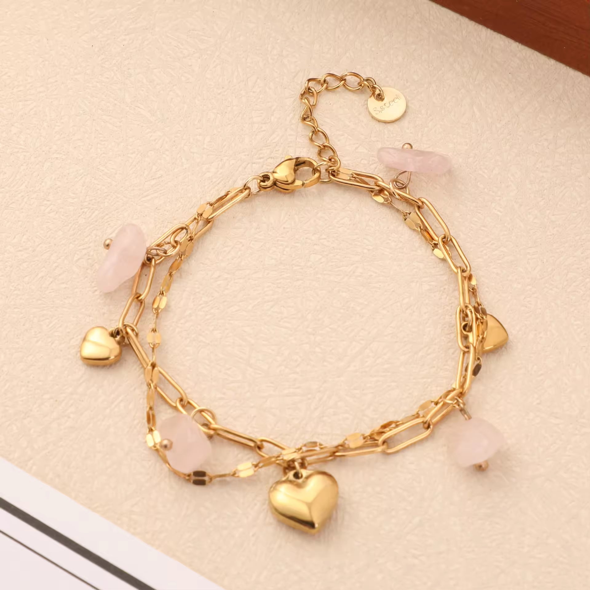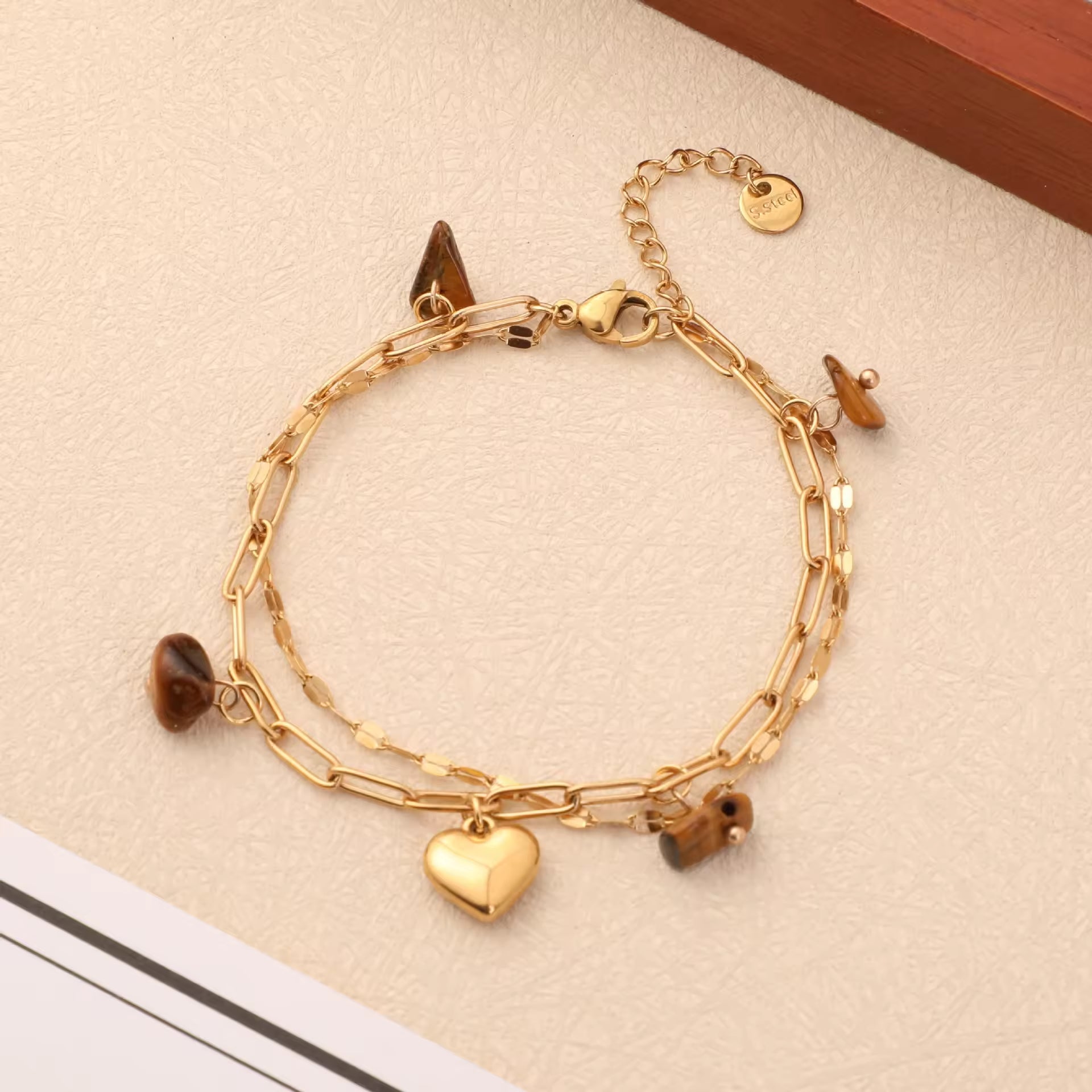Embrace effortless boho elegance with this Bohemian Style Multilayer Bracelet, featuring a heart-shaped charm and natural stone accents. Crafted from high-quality stainless steel, this bracelet blends romantic charm with free-spirited design. The layered chain style adds texture and movement, making it the perfect statement piece for casual looks, summer outfits, or special occasions.