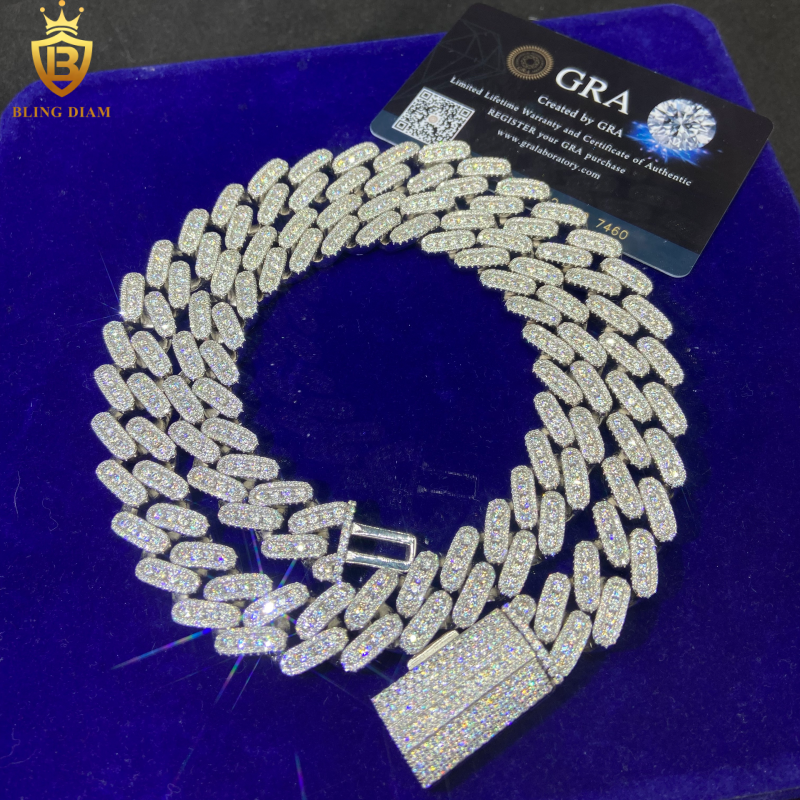 This 15mm Cuban link chain is a true statement piece, designed for bold hip-hop and rapper style. Crafted from solid 925 sterling silver and fully iced out with VVS moissanite, it delivers intense brilliance, strong fire, and a heavy luxury feel. Each moissanite stone is carefully hand-set to ensure long-lasting sparkle and durability.