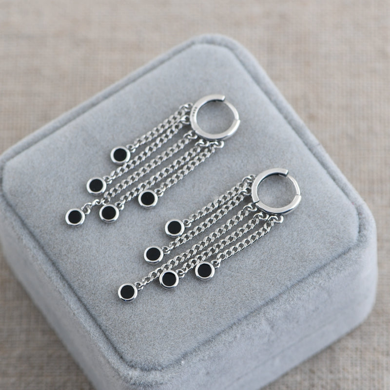 Add bold attitude to your look with these Punk Style S925 Sterling Silver Drop Earrings, featuring a sleek long chain design accented with an oil-drip finish and sparkling diamond detail. Lightweight yet striking, they embody edgy sophistication—perfect for modern fashion lovers.