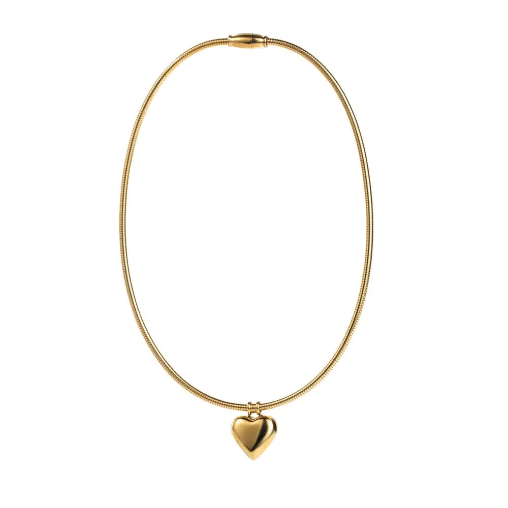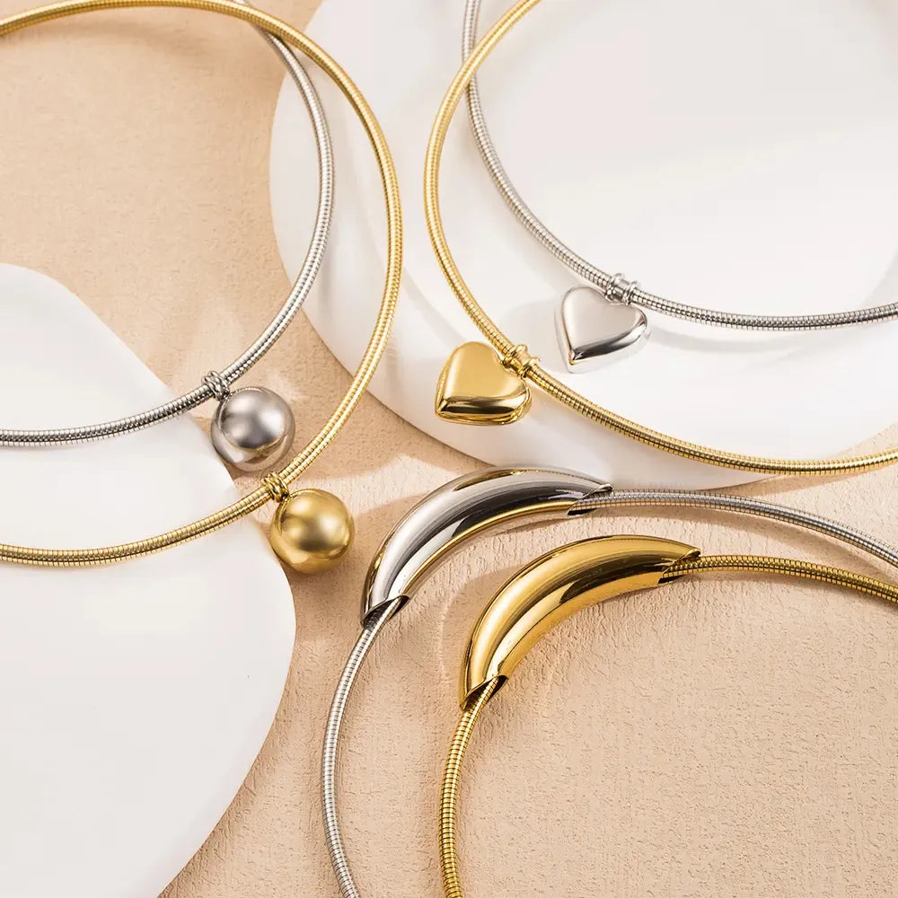 Where structure meets softness. This collection pairs bold, reflective pendants — spheres, hearts, and curves — with fluid snake chains in mixed metallics. It’s futuristic, polished, and made to stand out in the simplest way.