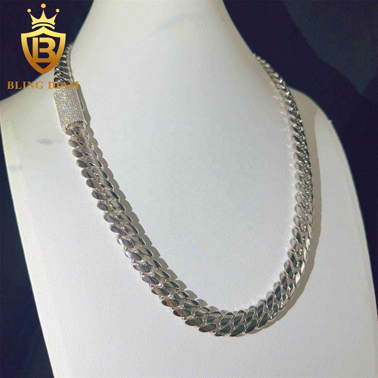 This 12mm Miami Cuban link chain blends bold hip-hop style with a clean, fine-jewelry finish. Crafted from solid 925 sterling silver and fully iced out with VVS moissanite stones, it delivers sharp fire and diamond-level brilliance. Each link is precision-set to create a smooth, seamless surface that shines from every angle.