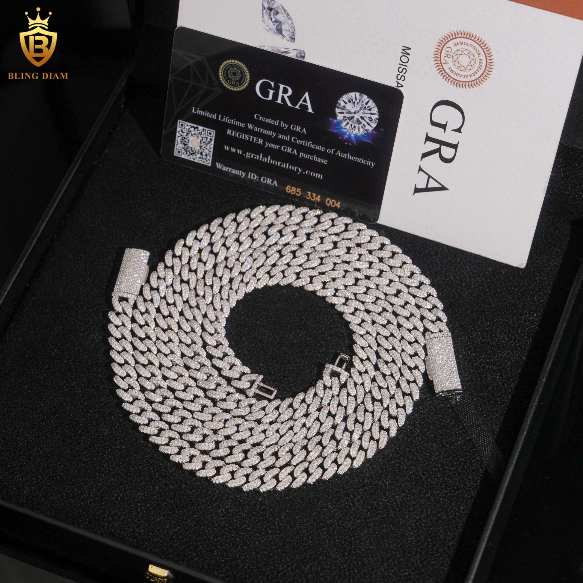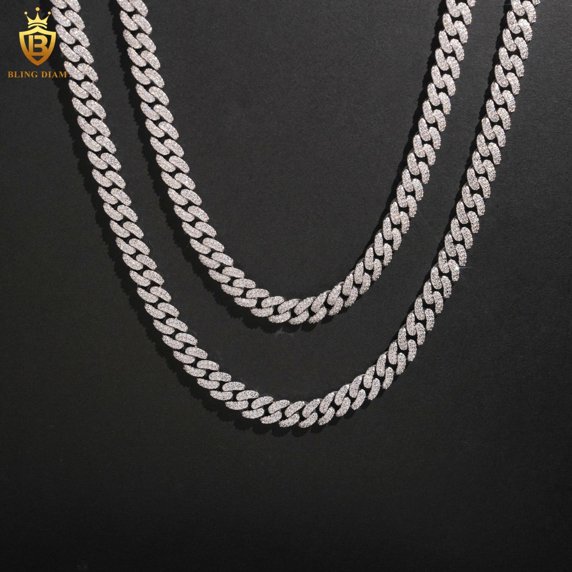 Miossanite 8mm 925 Sterling Silver Cuban Link Chain