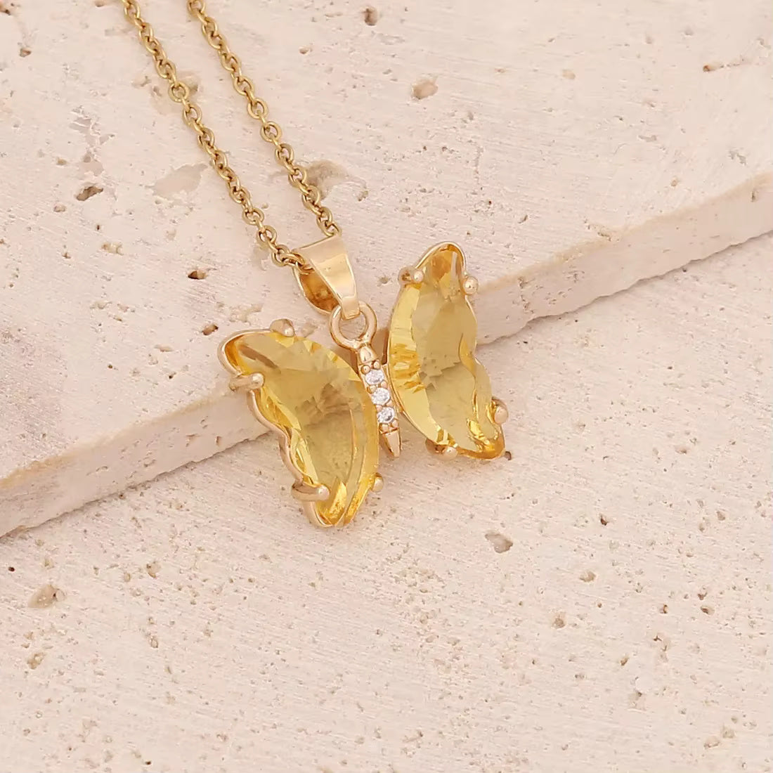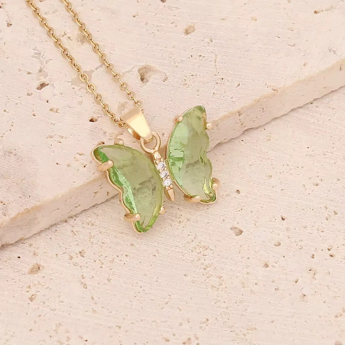This multi-colored pendant necklace captures the ethereal beauty of a butterfly in flight, crafted from durable stainless steel for long-lasting wear. The vibrant hues and intricate detailing make it a standout piece that complements any outfit.