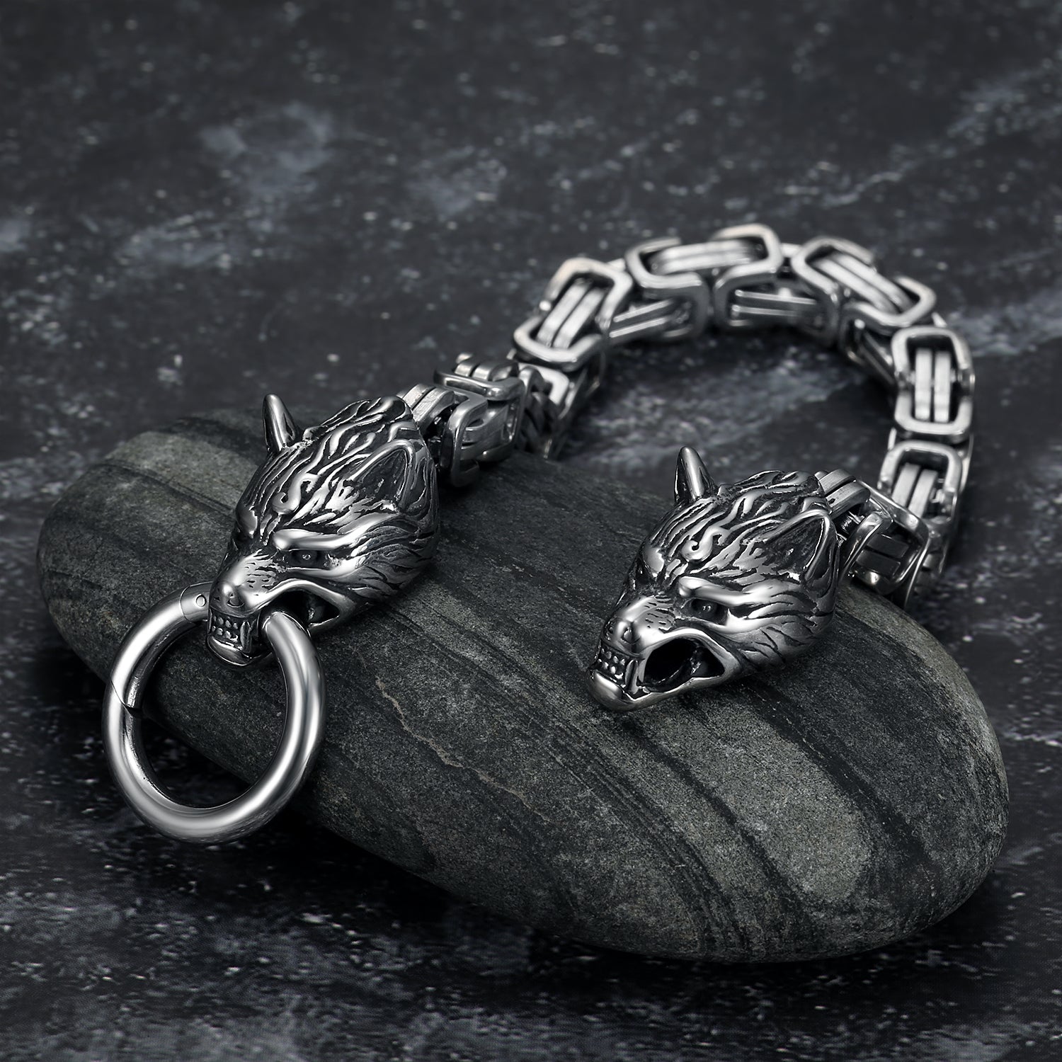 Unleash your inner warrior with this Viking Wolf Head Bracelet, crafted from premium stainless steel and inspired by Nordic mythology. The powerful wolf head clasp symbolizes courage, loyalty, and strength, while the Byzantium king chain adds a bold, masculine touch. With its chunky, rugged construction and polished finish, this bracelet is perfect for men who love Viking, biker, or punk-inspired fashion.
