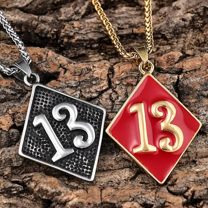 Show your biker spirit with this vintage-inspired pendant featuring the iconic number 13. A symbol often associated with biker culture and rebellion, this pendant is a perfect accessory for club members and motorcycle enthusiasts. Crafted from durable stainless steel with a unique color finish, it adds a personalized and edgy touch to any look.