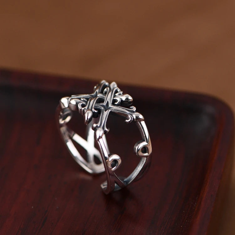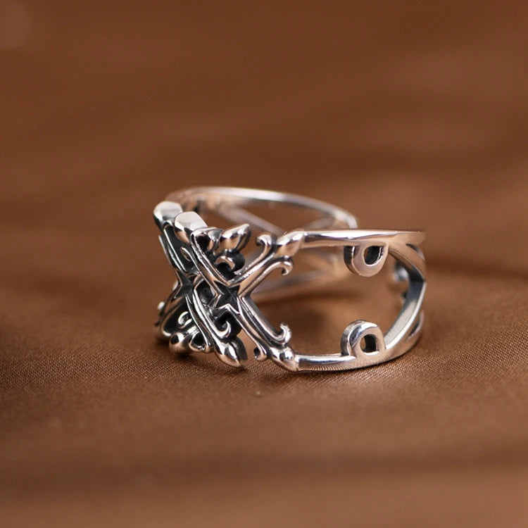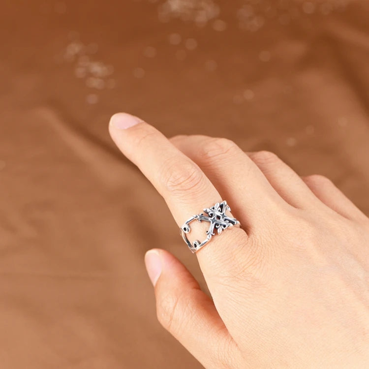 A bold symbol of mystery, strength, and rebellion—this adjustable ring adds a raw edge and vintage feel to a classic design.