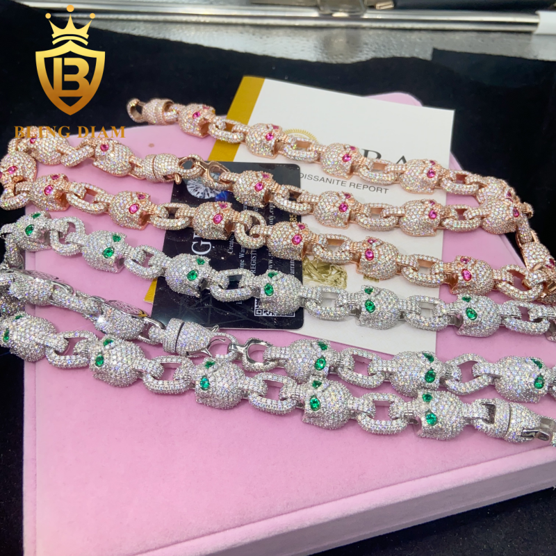 This skull-style iced-out Cuban link chain delivers bold hip-hop attitude with luxury craftsmanship. Made from solid S925 sterling silver and fully set with premium moissanite stones, it offers diamond-level brilliance, sharp fire, and intense shine. The skull design adds an edgy, street-inspired touch, making this chain a true statement piece.