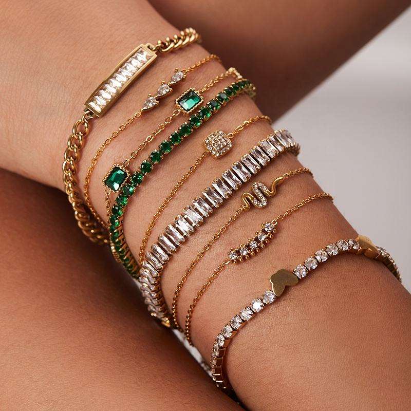 Add a touch of sparkle and charm to your look with this Dainty Green Zircon Butterfly Bracelet, crafted from premium stainless steel and finished with luxurious gold plating. The design features a delicate combination of snake chain and tennis-style link chain, highlighted by a green cubic zircon butterfly charm that brings freshness, elegance, and playful femininity.