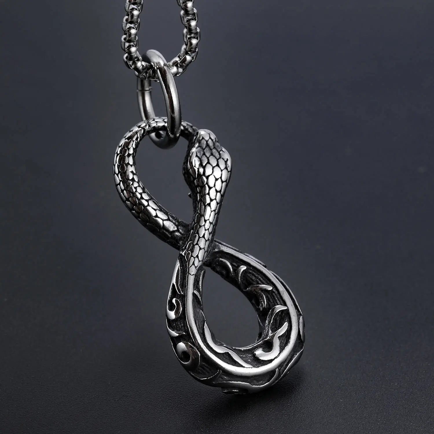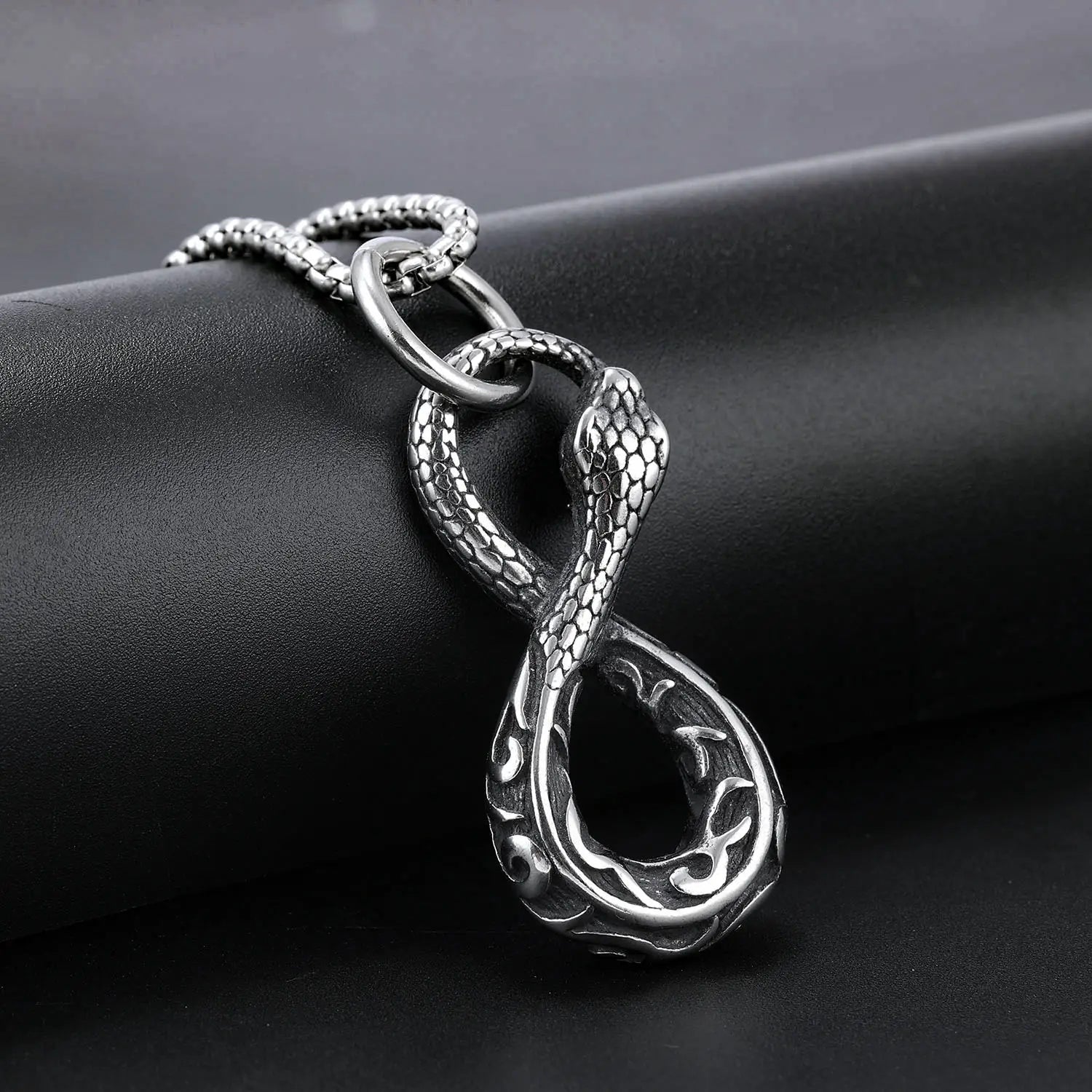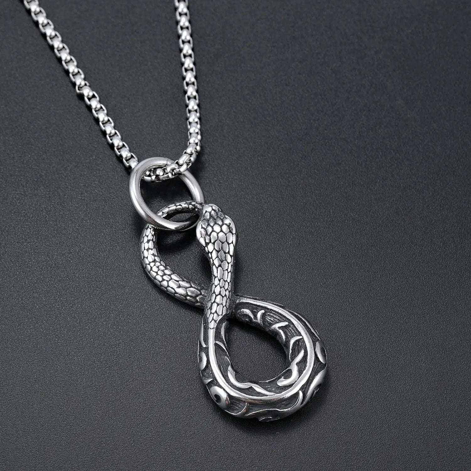 Endings and beginnings — forever entwined. This striking pendant features an infinity-shaped serpent, a modern twist on the ancient Ouroboros, symbolizing eternity, rebirth, and the cycle of life. With coiled detail and Norse-inspired flair, it's made for those who understand that time bends for no one — but you can still wear it well.