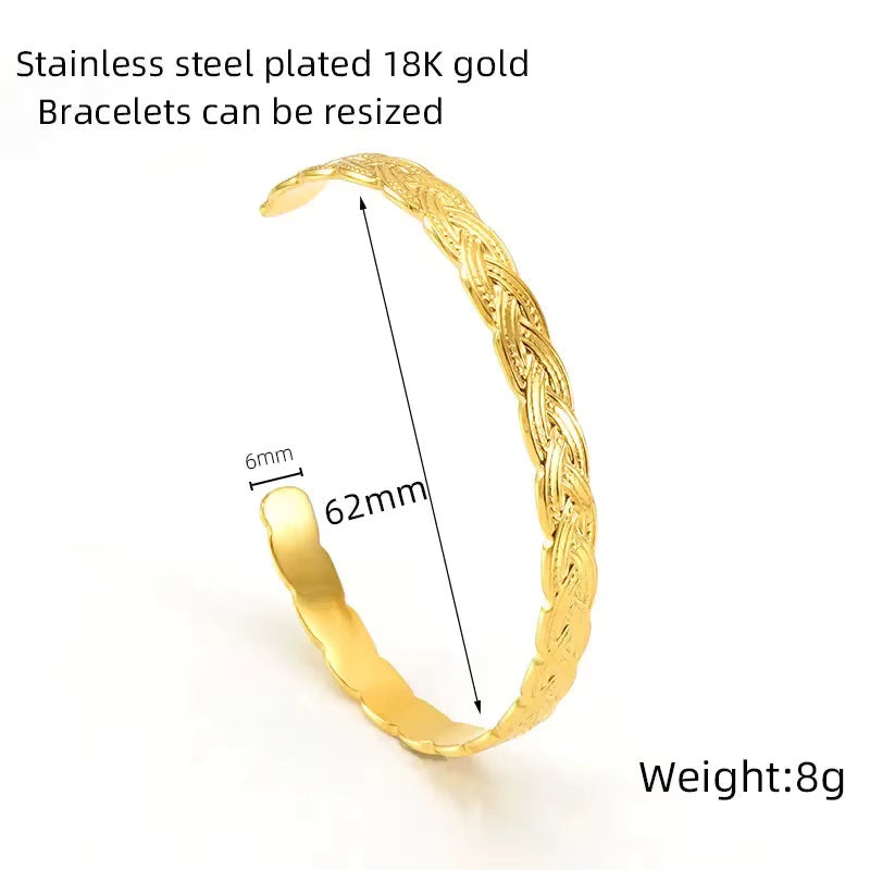 Add bold vintage charm to your look with this Snake Twisted Chain Bracelet, crafted from high-quality stainless steel and finished with a rich layer of 18K gold plating. Designed in a stylish C-shape open bangle, this piece features a textured snake-inspired twist pattern that gives it a luxurious, sculptural feel.